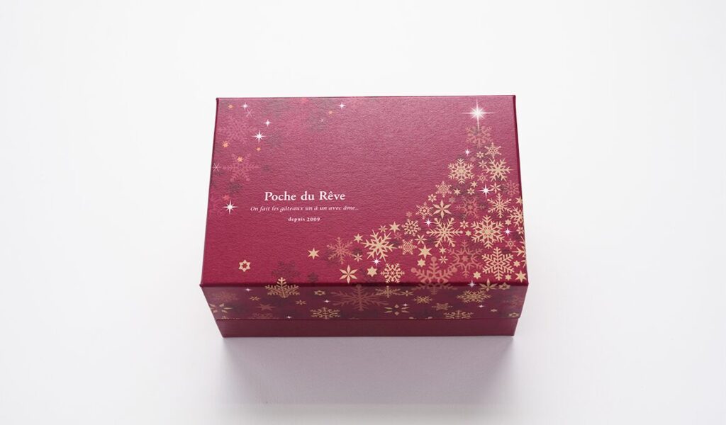 ボルドーレッドの上質で華やかなパッケージです。